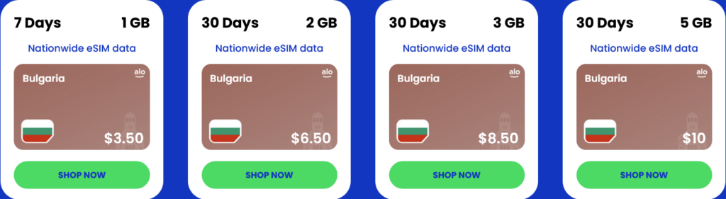 Alosim, a rapidly growing eSIM store with competitively priced eSIMs, has two eSIMs covering Bulgaria: