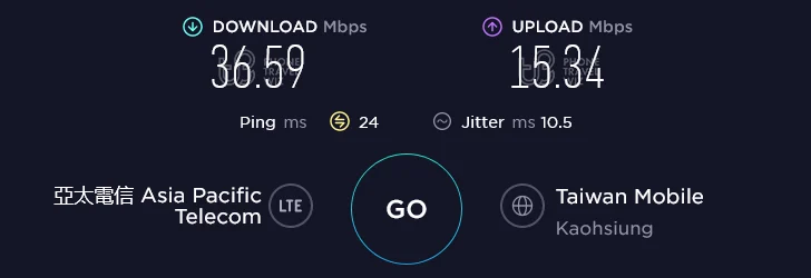 GT Mobile Taiwan Speed Test Results in Taoyuan City